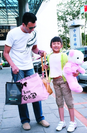 “爸爸年底就給你添個伴兒。ㄔO(shè)計(jì)臺詞)”今年5月胡軍帶著女兒看望從地震災(zāi)區(qū)送到北京醫(yī)治的孩子。玄反影 攝