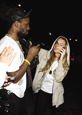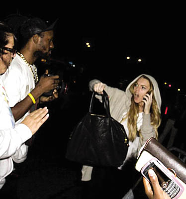 上周日晚,Bowery酒店門前,身穿連帽衫的琳賽·洛韓企圖跨過一個障礙,就在這時,意想不到的事情發(fā)生了——正在打電話的她誤以為一名記者企圖將她絆倒,于是她揮拳打向了那名記者!打完之后,她對著電話那頭的人說:“噢,我的上帝,我打了一名狗仔記者!