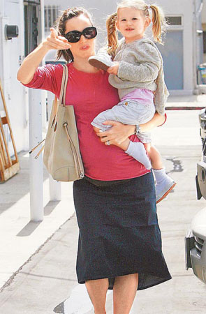 珍妮弗·加納常抱女兒紫羅蘭上街。
