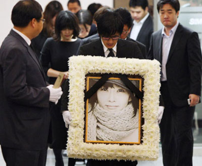 中新網(wǎng)10月6日電 本月2日以自殺結(jié)束生命的韓國藝人崔真實(shí)遺體告別儀式4日在親友們的眼淚中莊嚴(yán)舉行。