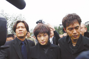 沒(méi)有主持人,沒(méi)有悼詞。中午1時(shí),謝晉的遺孀徐大雯、智障的小兒子阿四在家屬的攙扶下,走進(jìn)了靈堂。雖然眼睛紅腫,但徐大雯依舊是昂著頭走進(jìn)靈堂的,目光一直望著大廳上方謝晉的遺像。隨后,影壇各界人士相繼到來(lái),紛紛表達(dá)了各自的哀痛。成龍、陳凱歌、周迅等大腕雖然沒(méi)有到場(chǎng),但也送來(lái)了花圈。