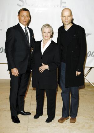 導(dǎo)演弗斯特(右)與朱迪·丹奇(中)、丹尼爾·克雷格