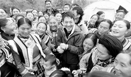 當(dāng)天,李連杰還走訪了茂縣境內(nèi)的羌繡技藝培訓(xùn)基地,之后,他又繼續(xù)趕往綜渠鄉(xiāng)的羌繡幫扶點(diǎn),探望那里的繡女朱召應(yīng)。朱召應(yīng)和丈夫在汶川大地震中雙雙受傷,她的脊柱受損不能站立,她的兒女又有殘疾,生活非常艱難,后來朱召應(yīng)加入羌族婦女就業(yè)幫扶計(jì)劃,每天埋頭做羌繡,生活有了很大改善。李連杰在她居住的帳篷里,不斷鼓勵(lì)這個(gè)坐在輪椅上的堅(jiān)強(qiáng)女性,“你一定要繼續(xù)加油,總會(huì)慢慢好起來的!彪x開茂縣之前,有人把剛剛收到的一條新聞短信拿給李連杰看,原來這是本報(bào)“華西手機(jī)報(bào)”發(fā)出的一條新聞,正是轉(zhuǎn)載昨日本報(bào)的報(bào)道《慈善大俠李連杰來到咱羌寨》,李連杰看了后很是高興,不過他說:“做慈善其實(shí)并不是我一個(gè)人的事,大家一起努力才能成功,有了我們是一家人的信念,一定能戰(zhàn)勝困難!