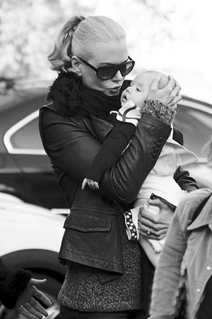 圖文:妮可抱愛女亮相 不時努嘴逗女兒