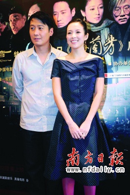 黎明和章子怡前日現(xiàn)身廣州宣傳《梅蘭芳》。