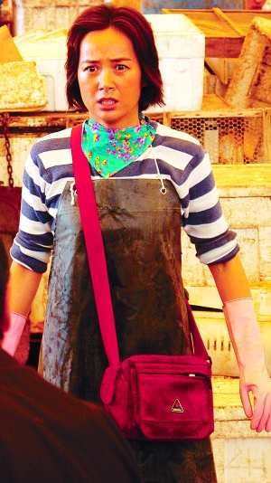 我沒覺得我在扮丑。我去體驗生活的時候發(fā)現(xiàn)那些賣海鮮的女性臉都紅撲撲的,有點像高原紅,農(nóng)村女孩子一般都會有的。我讓化妝師在臉上打上這種高原紅,還又多點了些雀斑。我本來臉上就有雀斑,更真實更生動一點吧。很多服裝也都是服裝師從當(dāng)?shù)刭u海鮮的人那里收集來的。其他就沒有了。因為我本身的氣質(zhì)比較城市化一些,人家一看還覺得像個老師什么的,所以我需要自己在外形上做得比較靠近她們,否則演出來很不像。