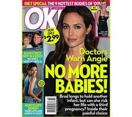 中新網(wǎng)12月31日電 剛出爐的“OK!”雜志,嚴(yán)重警告茱莉不能再懷孕,否則是跟自己的身體開(kāi)玩笑!