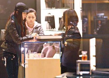 最后,冰冰與一眾友人前往另一名店,見她不時到柜細心挑選過萬元的男裝手表,以及數(shù)千元一支的墨水筆,之后又到另一柜位看手鏈和頸鏈,友人也不時給予意見,眾人在店內(nèi)逗留約一小時,最后冰冰買了共十份禮物。冰冰貴為該品牌亞洲代言人,當日合共花了約十萬元購物,認真豪氣。