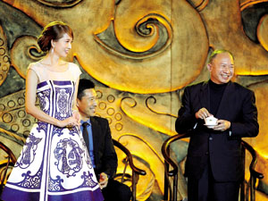 林志玲用古代女子的姿勢倒了一杯茶,走到吳宇森面前,身子微微一傾,纖聲細語道:“導(dǎo)演,您請!”吳宇森剛把茶接到手,主持人的聲音就響起了:“導(dǎo)演,這杯茶您得干了!”全場哄堂大笑,吳宇森只好再次喝完。