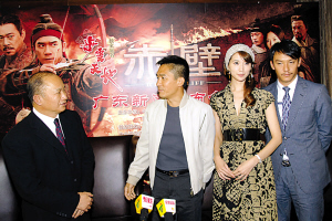 梁朝偉、張震、林志玲,三人坐在一起誰最受關(guān)注?就電影資歷和實(shí)力而言,“新丁”林志玲肯定是最弱的。但在昨天的“步云天地《赤壁》廣東新聞發(fā)布會(huì)”上,林志玲的風(fēng)頭蓋過了所有人,跟她同組接受采訪的影帝梁朝偉都只有默不作聲玩手指的份。為什么?因?yàn)榱种玖岬呐e止和言語表現(xiàn)實(shí)在完美,讓媒體的視線 “緊鎖”在她身上。
