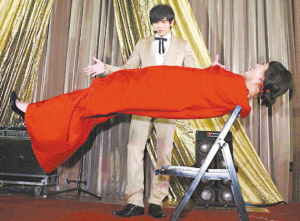 朋友“彈頭”結(jié)婚時(shí),當(dāng)晚最大的高潮就是周杰倫現(xiàn)身表演魔術(shù),一連三段的魔術(shù)表演有變出新娘、人體漂浮,還有紙袋生酒杯。