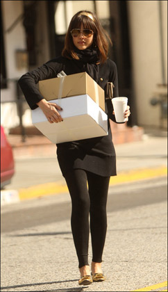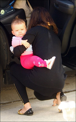 成為了媽媽的杰西卡·阿爾芭已經(jīng)恢復了窈窕的身材,一身黑色,但是明黃色的書包成為了全身的亮點,星范十足。而懷抱中的閨女則是好像深思者這樣,在想問題。