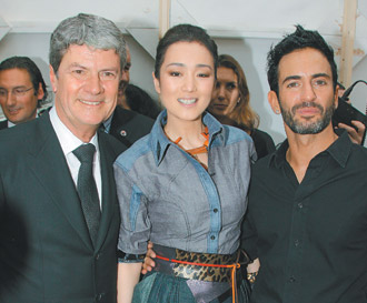 中新網(wǎng)3月14日電 據(jù)臺(tái)灣《聯(lián)合報(bào)》報(bào)道,LV秋冬服裝秀壓軸登場,推出性感甜美的迷你小蓬裙和小泡褲,果然是去年少數(shù)賺錢的精品名牌之一。國際巨星鞏俐則是一身帥氣勁裝亮相,腰系豹紋日式腰封、手拎豹紋手拿包,十分利落。
