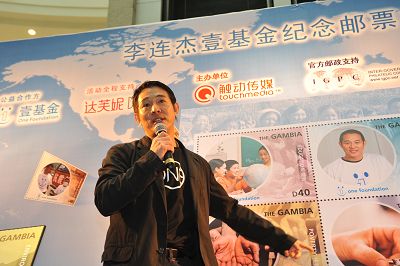在活動現(xiàn)場,李連杰與觸動傳媒聯(lián)袂揭曉了6枚一套的慈善紀念郵票。據(jù)了解,這套郵票限量10萬套,定價為111元一套。這個價錢是李連杰要求的,因為111元符合壹基金“每1人+每1個月+每1元=1個大家庭”的理念,而該郵票實際面值超過60元。在昨天的活動上還發(fā)生了一段小插曲,一名來自西安的女粉絲在參與觀眾提問環(huán)節(jié)時向李連杰“示愛”。該粉絲拿到話筒后就顯得很激動,全身上下不停地抖動,在哆嗦了半天后她大喊:“我是你西安的影迷,我從小就喜歡看你的電影,我好崇拜你,我夢想就是找到像你這樣的老公!贝嗽捯怀鲎層衅抻信睦钸B杰很尷尬,他只好在臺上傻笑。過了幾十秒,李連杰才蹦出兩個字“謝謝”。