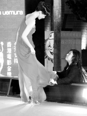 由于突如其來(lái)的風(fēng)雨,最近深受懷孕傳聞困擾的劉嘉玲和老公梁朝偉沒(méi)有走紅地毯,而是從后門(mén)悄然入場(chǎng)。昨晚紅地毯上唯一能與林志玲一爭(zhēng)長(zhǎng)短的就只有湯唯了。湯唯昨晚選擇了一身華倫天奴的紅色曳地長(zhǎng)裙,斜露單肩的設(shè)計(jì)頗有古希臘的風(fēng)韻。不過(guò),即便對(duì)于身材高挑的湯唯來(lái)說(shuō),這條長(zhǎng)裙也太長(zhǎng)了點(diǎn)。她在紅地毯上一不留神,高跟鞋的鞋跟就踩住了裙擺,一時(shí)難以脫開(kāi)。湯唯當(dāng)時(shí)表現(xiàn)得很鎮(zhèn)定,她一邊指指裙擺,向提問(wèn)的記者表示歉意,一邊走到場(chǎng)邊,在工作人員的幫助下才讓高跟鞋擺脫了裙擺的糾纏。