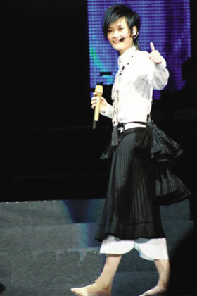 3日晚8點(diǎn)廣州天河體育館內(nèi),李宇春2007廣州演唱會舉行。在幾千名“玉米”高喊“李宇春——我的”呼聲中,李宇春一身金色服裝登場,整場演唱會李宇春一共換了5套服裝,其中“玉米”們呼聲最高的是李宇春的一套黑色裙子。演唱會結(jié)束后“玉米”們?nèi)跃镁貌辉鸽x去。(小雨)