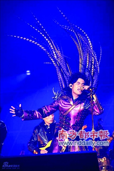 開場歌曲為《黃金甲》,周杰倫穿著一身閃亮的紫衣,背后插著華麗的羽毛登場。之后是一首新專輯中的快歌,模仿了一下VITAS的假聲唱法。在幾首快歌之后是一長串慢歌,包括《最后的戰(zhàn)役》、《最長的電影》、《安靜》等,這個段落周杰倫大秀鋼琴,還和“彈頭”來了一段K琴。