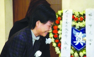 在昨天的遺體告別儀式現(xiàn)場,最悲痛的莫過葉凡的姐姐劉女士了,從葉凡病危以來,劉女士一直陪伴在妹妹身邊。心愛的妹妹這么年輕就離家人而去,劉女士一直不能接受這個現(xiàn)實?匆娒妹玫倪z體躺在冰冷的水晶棺內,劉女士不禁失聲痛哭:“你睜開眼睛看看我們大家!”在追悼會進行中,劉女士幾次撲倒在妹妹的水晶棺前,而當葉凡的遺體從靈堂送往火化館時,劉女士再次撲倒在水晶棺前失聲痛哭。此時葉凡的丈夫徐希壯也手捧遺像站到劉女士身邊,安慰劉女士說:“別哭了,葉凡也不希望我們這么悲傷,讓她走得開心點吧!”