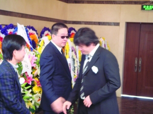 在昨天的眾多友人中,戴玉強與葉凡合作過多次,不但一同登臺表演,還曾合唱過。在追悼會進行時,戴玉強正好站在記者的前面,對于葉凡的突然離世,戴玉強有著無限的哀思,當他聽到武警文工團的尚政委致悼詞時,戴玉強忍住傷悲,眼眶里噙著淚水,在回過頭看著自己獻上花圈題詞“哀花兒之早凋,嘆知音之難求。葉凡小妹,一路走好”的同時,不禁哀嘆惋惜,喃喃自語道:“走得太快了!”