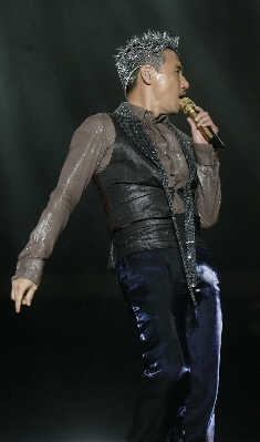 一年里三次在上海體育場舉行個唱,而且場場爆滿,這是“歌神”張學友創(chuàng)下的奇跡。前晚的張學友上海個唱,場外依然一票難求。不過,整場演出從曲目到舞蹈,甚至連臺詞都與今年4月的演唱會一模一樣,對此張學友在演唱會后接受采訪時無奈地表示:“我已經(jīng)盡了全力!