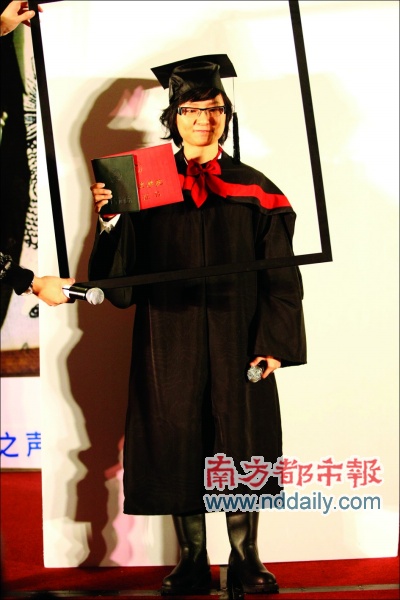 星海音樂(lè)學(xué)院2003屆最著名的學(xué)生周筆暢同學(xué),今年終于畢業(yè)了。昨日,在她的新專(zhuān)輯首發(fā)廣州站活動(dòng)上,就穿插了一場(chǎng)別開(kāi)生面的畢業(yè)典禮。穿著學(xué)士服的周筆暢,隆重地從老師手中接過(guò)了畢業(yè)證書(shū),現(xiàn)場(chǎng)更架起了相框,拍起了畢業(yè)照。而當(dāng)日同期發(fā)行的兩張專(zhuān)輯《NOW》和《WOW》,也就成了周筆暢最有說(shuō)服力的一份畢業(yè)作品。