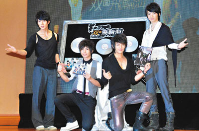 飛輪海今天與5566同日發(fā)片,加上已發(fā)片的F4和棒棒堂,男團(tuán)大戰(zhàn)一觸即發(fā)。