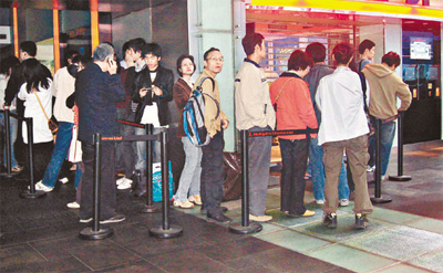 至于另一邊圓方的售票站,因信用卡付款出問題只能收現(xiàn)金,令賣票進(jìn)度大阻,單排頭位買票便花了近一小時(shí),其他輪候歌迷要急急往銀行提款,以免耽誤事。對于售票機(jī)制,學(xué)友經(jīng)理人陳淑芬說:“因?yàn)椴辉诩t館搞,所以就沒有限制了!”提到信用卡機(jī)失靈,她說:“不關(guān)這部機(jī)的事,是電話線出問題,后來也就沒事了!”