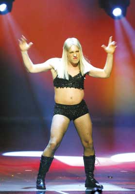 某男Echo頒獎(jiǎng)禮辣衣熱褲扮布蘭妮笑爆滿場(chǎng)(圖)