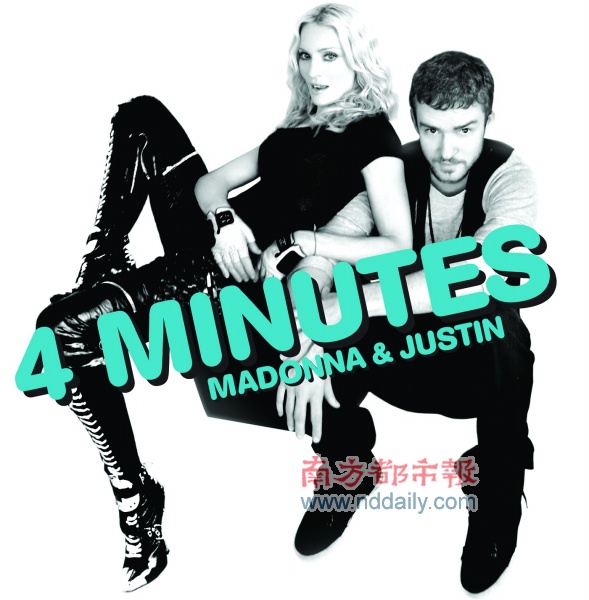 麥當(dāng)娜全新單曲《4Minutes》已于昨日起全球同步首播,與此同時(shí),唱片公司也正式公布了這張單曲碟的封面設(shè)計(jì)。因?yàn)檫@首歌是由麥當(dāng)娜和賈斯汀合唱的作品,所以單曲碟也用了兩人的合照做封面。