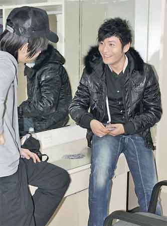 黃曉明黑馬王子造型亮相 跪地向女歌迷示愛(圖)