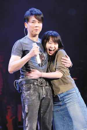 之后陶喆再請來一名身材比較豐滿的日本女歌迷上臺,伴他一起唱《流沙》,陶喆更公開大贊該歌迷很靚女,唱歌期間,陶喆不是拖著這位女歌迷,就是緊緊攬著她,最后更大方吻向?qū)Ψ降念~頭,這位女歌迷也幸福得錯(cuò)把自己的名字說成“很高興”,而臺下歌迷更是尖叫連連。