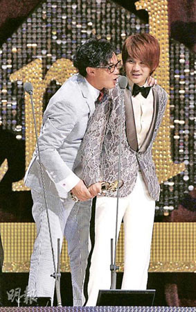 中新網(wǎng)7月7日電 第19屆臺(tái)灣金曲獎(jiǎng)前晚(5日)揭曉,賽前“最佳國(guó)語(yǔ)男歌手”呼聲甚高的陳奕迅僅以2票之差敗給新人王曹格,擔(dān)任頒獎(jiǎng)嘉賓的他更要抑壓失落情緒,將獎(jiǎng)座送到曹格手上。