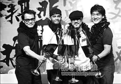 本報(bào)訊 (記者 黃銳海)李宗盛、羅大佑、周華健三位臺(tái)灣樂壇殿堂級老將,再加上一個(gè)稍微后生點(diǎn)的張震岳,最近在臺(tái)灣組建了一支名為“縱貫線”的樂隊(duì),他們自稱是“臺(tái)灣最老的”樂隊(duì),因?yàn)樗娜说哪挲g加起來超過了200歲。近日,四人就在臺(tái)灣舉行了發(fā)布會(huì),更表示他們現(xiàn)在最重要的事情,就是瞄準(zhǔn)明年“金曲獎(jiǎng)”的“最佳新樂隊(duì)”大獎(jiǎng)。