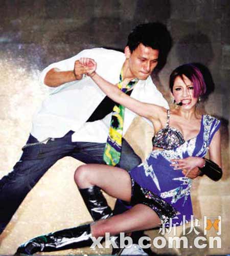 趁新專輯《3面夏娃》大賣,El-va9日晚在臺中舉辦表演秀,并以性感舞衣及14首金曲答謝粉絲,最矚目的是她身穿單肩閃電圖案上衣,秀出鑲鉆Bra-top及性感熱褲,配合鑲滿鉆石的眼鏡道具,加上她與籃球隊(duì)選手陳志忠大跳辣舞,掀起全晚高潮!不過Elva這個“半盲”造型彩排時(shí),不慎差錯腳,幾乎從3米高臺墜下,幸好有驚無險(xiǎn)。經(jīng)紀(jì)人抹一把汗之余,立即將保險(xiǎn)額加碼至2000萬港元。
