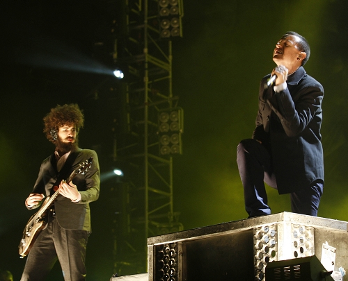 容易受傷的林肯公園主唱Chester(右)史訓(xùn)鋒 早報(bào)資料