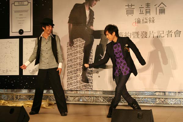 隨后記者會(huì)的重頭戲---簽約儀式正式開(kāi)始,華納唱片大中華總經(jīng)理王蓓芬(帕梅拉)和黃靖?jìng)愐黄鹱叩奖嘲宓挠液蠓,兩人一同揭開(kāi)星星布幕,亮出星型的合約書,在大家的見(jiàn)證下簽名,代表華納唱片正式簽下這位“超級(jí)星光大道”第三屆最閃亮的一顆星,并象征黃靖?jìng)悓⒊蔀楦鑹W耀的一顆星星,希望他用簡(jiǎn)單的歌聲打動(dòng)人心。帕梅拉大費(fèi)周張買了一顆價(jià)值1萬(wàn)美金的“星星”當(dāng)做禮物送給黃靖?jìng)悾@顆特別為黃靖?jìng)愑嗁?gòu)的星星以黃靖?jìng)愑⑽拿癑ING”命名。收下了這個(gè)特別的禮物,黃靖?jìng)惛袆?dòng)的說(shuō)不出話,不敢相信自己擁有了一顆“真的星星”。 除此之外,華納音樂(lè)更是準(zhǔn)備了另一項(xiàng)大禮:當(dāng)主持人宣布?xì)g迎知名舞蹈老師張勝豐出場(chǎng)時(shí),黃靖?jìng)愡有點(diǎn)訝異,原來(lái)是唱片公司認(rèn)為黃靖?jìng)悤?huì)唱又很會(huì)說(shuō)話,但唯一欠缺的就是肢體動(dòng)作,在他身上總是會(huì)發(fā)現(xiàn)同手同腳、舞步不在節(jié)奏上的情形。然而,既然要發(fā)片成為正式的歌手,當(dāng)然不可以忽略這個(gè)部份。張勝豐老師搞笑地拿出節(jié)拍器當(dāng)場(chǎng)要黃靖?jìng)怱OLO一段舞步讓老師看看,臺(tái)下歌迷也不斷鼓噪著,黃靖?jìng)惛蠋煹氖痉秳?dòng)作做一次,果真很不協(xié)調(diào),完全不在拍子上,笑得杉哥在一旁大方宣布:“舞蹈集訓(xùn)沒(méi)有期限,讓靖?jìng)惿险n上到擺脫肢障封號(hào)為止。”逗得全場(chǎng)哈哈大笑。
