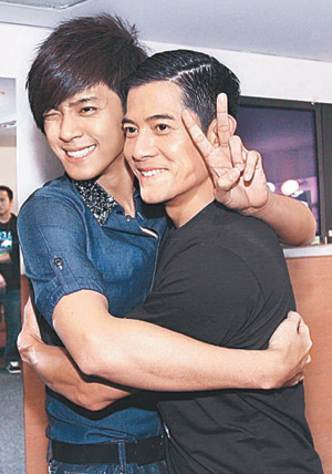 中新網(wǎng)12月19日電 臺灣“聯(lián)合報”報道,郭富城臺北演唱會圓滿落幕,在事后的慶功宴上,“小豬”羅志祥得以與“舞王”擁抱,他情不自禁做出勝利手勢。