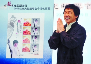 據(jù)悉,成龍個性化郵票和紀(jì)念郵冊現(xiàn)已在北京各主要郵政支局售賣,去鳥巢觀看“成龍和他的朋友們”演唱會的觀眾也可在鳥巢的郵局購買郵票和郵冊。
