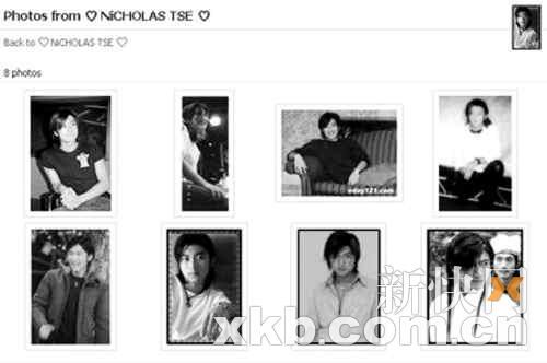 為了一探究竟,記者根據(jù)M提供的網(wǎng)址,也到該網(wǎng)站上注冊了一個用戶名。輸入“NicholasTse”,隨即便搜索出好幾頁同名用戶,不過在眾多老外中,很快就發(fā)現(xiàn)了非常明顯的黃皮膚——謝霆鋒的頭像。打開之后,里面有小謝的檔案,包括歷年唱片和電影,還有家庭狀況,下面相冊里還貼了很多他的帥照。而在他的好友欄,記者發(fā)現(xiàn)了“緋聞女王”陳見飛(陳冠希的姐姐)、“露點之王”鄭希怡等。
