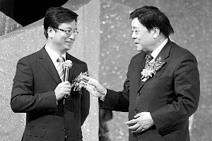 當(dāng)晚獲獎的播音主持人當(dāng)中,僅崔永元因在云南制作節(jié)目沒有到場。主持人通過電話連線了遠在云南的崔永元。他笑稱,“因為在場的都是我的老師,只有白巖松是我的徒弟,所以他替我領(lǐng)獎吧!倍宜“欽點”趙忠祥為他頒獎。(記者解宏乾)