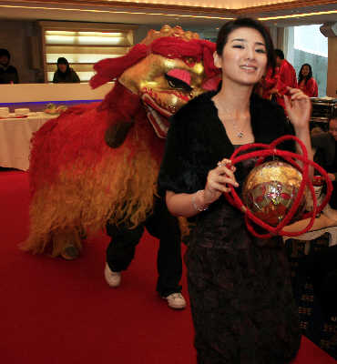 “2008新娛樂慈善群星會(huì)”將于3月1日在上海東方藝術(shù)中心舉行。昨天下午,主辦方SMG新娛樂在浦江游輪“君子蘭”號(hào)上舉行了隆重的“2008新娛樂慈善群星會(huì)”啟動(dòng)發(fā)布會(huì),為即將舉行的盛大頒獎(jiǎng)活動(dòng)拉開了序幕,F(xiàn)場(chǎng),歌手何潤(rùn)東和“小燕子”黃奕以一段熱鬧的舞獅出場(chǎng),為活動(dòng)預(yù)熱。
