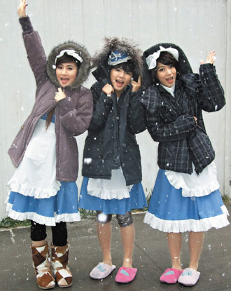 S.H.E變裝俏女仆 臉都凍僵還要扮可愛(組圖)