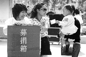 5月18日下午,國美第一城的部分居民在社區(qū)廣場(chǎng)上表演唱歌、朗讀等節(jié)目,以吸引眾人前來捐款,當(dāng)天獲捐數(shù)額達(dá)到了1萬多元。本報(bào)記者 王嘉寧 攝
