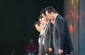 主持人鞠躬默哀。