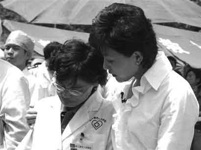 今天,我們“母愛在行動”特別行動小組抵達重災區(qū)德陽綿竹市。我和全國婦聯(lián)副主席書記處書記莫文秀、鄧婕、蔣勤勤、佟梅、心理專家金韻蓉等行動小組的成員一起,在受災群眾集中的綿竹南廣場探望了部分受災兒童和孕產(chǎn)婦。