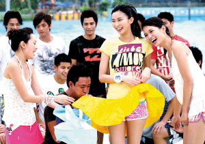 6月28日,2008年度香港先生和香港小姐各12名選手齊聚番禺長隆水上樂園,為比賽進(jìn)行外景拍攝。港姐紛紛以比基尼亮相,港男搶鏡頭意識不輸女生,有胸肌的時(shí)刻擺出健美姿勢,身材略單薄的也全程擺出笑容。
