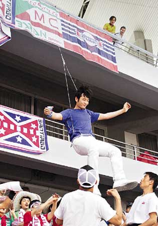 據(jù)臺灣“聯(lián)合報”報道,黃曉明拍百事廣告全力以赴,他會從運動場看臺飛躍而下,還跨越群眾頭上玩水上飄。黃曉明說:“有一個鏡頭是我從觀眾的頭上走過去,導(dǎo)演要我真的很用力踏到其中一些人的頭上,唉,真的很不好意思,因為有一個人被我弄傷了!