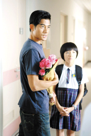 上海文廣傳媒發(fā)起的“2008分之1”公益短片拍攝工作已近尾聲,關(guān)錦鵬執(zhí)導(dǎo)的公益短片《落地》20日在香港殺青。郭富城在短片中扮演一位在產(chǎn)房外等待妻子分娩的丈夫,而扮演他小姨子的小演員竟是徐嬌。這回徐嬌光明正大地恢復(fù)女兒身,梳著整齊的學(xué)生頭,再穿上一身校裙,乍一看還辨認(rèn)不出這就是《長江七號》里的那個假小子。