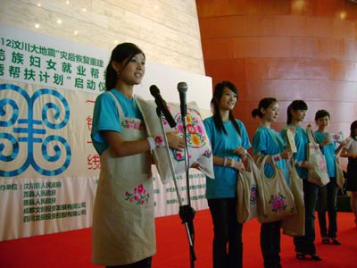 在稍后的一周時(shí)間內(nèi),5位中華小姐將前往羌民族世代聚居、同時(shí)也是受地震破壞嚴(yán)重的汶川、理縣、茂縣等地,與羌族婦女一起住帳篷、做刺繡,了解羌繡手工技藝、感受和記錄災(zāi)區(qū)同胞在災(zāi)后重建階段的生活狀況。5位華姐義工將在“壹基金”位于四川當(dāng)?shù)氐那祭C幫扶中心的培訓(xùn)指導(dǎo)下,了解羌繡的生產(chǎn)流程、參與產(chǎn)品的設(shè)計(jì)包裝,在進(jìn)行全面深入調(diào)研的基礎(chǔ)上集體完成羌繡幫扶報(bào)告并制定羌秀推廣計(jì)劃。5名華姐義工,有學(xué)習(xí)傳媒專業(yè)的,也有學(xué)習(xí)服裝設(shè)計(jì)專業(yè)的,我們會(huì)設(shè)計(jì)出有針對(duì)性和可行性的羌繡推廣方案,通過(guò)報(bào)紙、電視、網(wǎng)絡(luò)讓更多的人了解羌繡,同時(shí)也給羌繡手工藝品開拓一片市場(chǎng),幫助受災(zāi)群眾盡快實(shí)現(xiàn)生產(chǎn)自救。”