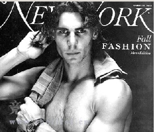 奧運會網(wǎng)球男子單打新科冠軍納達(dá)爾成為時尚界的新寵。他赤裸上身大展肌肉,成為即將于本月25日出版的美國時尚雜志《紐約》雜志男女雙刊男子部分的封面人物,與他對應(yīng)的女子部分的封面人物則是前名?死锼沟佟げ剂挚死。